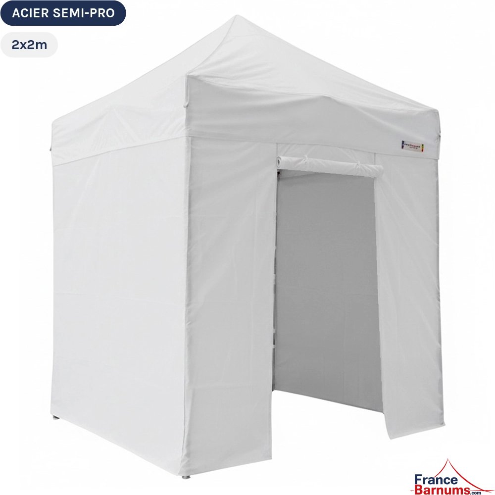 Barnum pliant - Tonnelle Acier Semi Pro 2mx2m BLANC avec Pack 4 Côtés