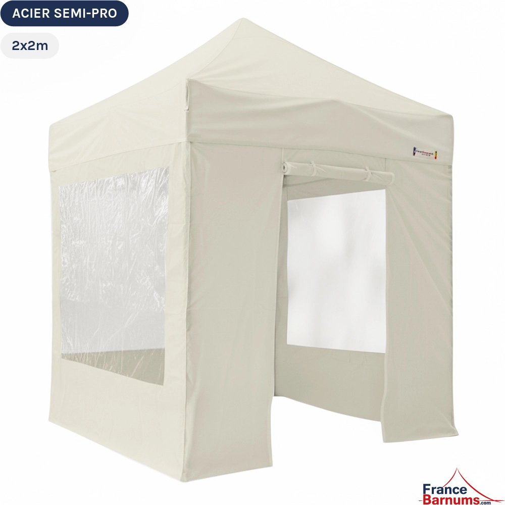 Barnum pliant - Tonnelle Acier Semi Pro 2mx2m BEIGE avec Pack Fenêtres