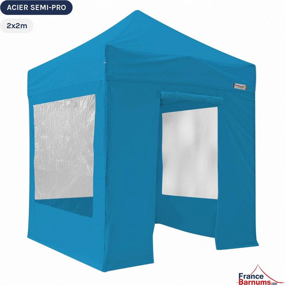 Barnum pliant - Tonnelle Acier Semi Pro 2mx2m BLEU AZUR avec Pack Fenêtres