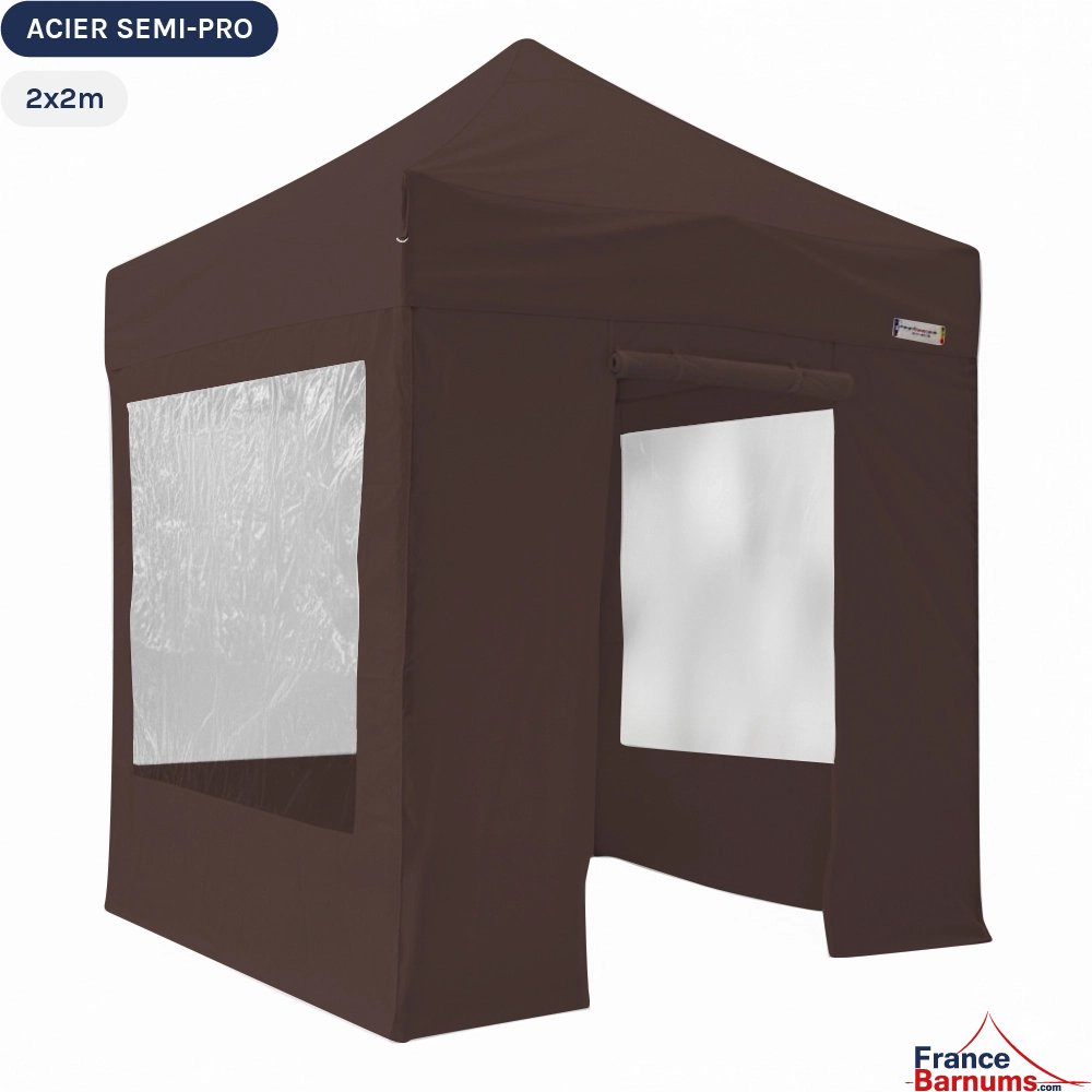 Barnum pliant - Tonnelle Acier Semi Pro 2mx2m BRUN CACAO avec Pack Fenêtres