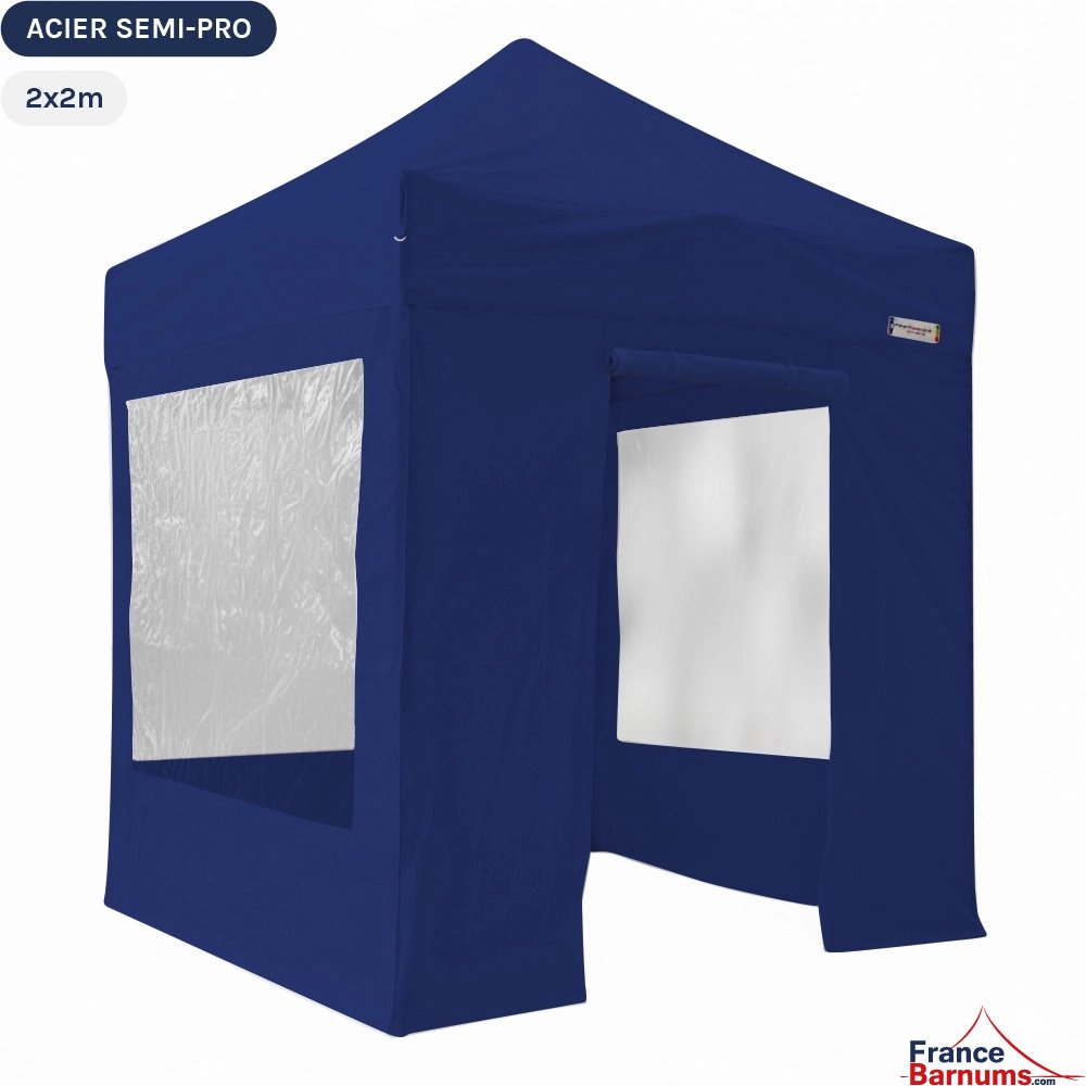 Barnum pliant - Tonnelle Acier Semi Pro 2mx2m BLEU avec Pack Fenêtres