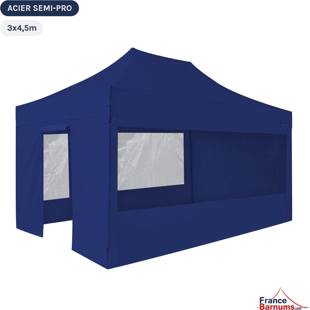 Barnum pliant - Tonnelle Acier Semi Pro 3mx4,5m BLEU avec Pack Fenêtres