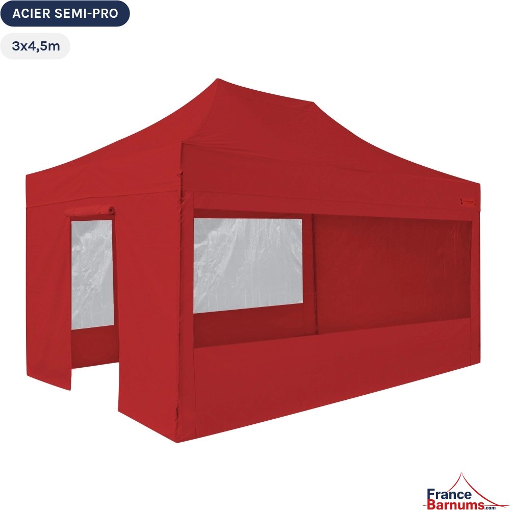 Barnum pliant - Tonnelle Acier Semi Pro 3mx4,5m ROUGE avec Pack Fenêtres