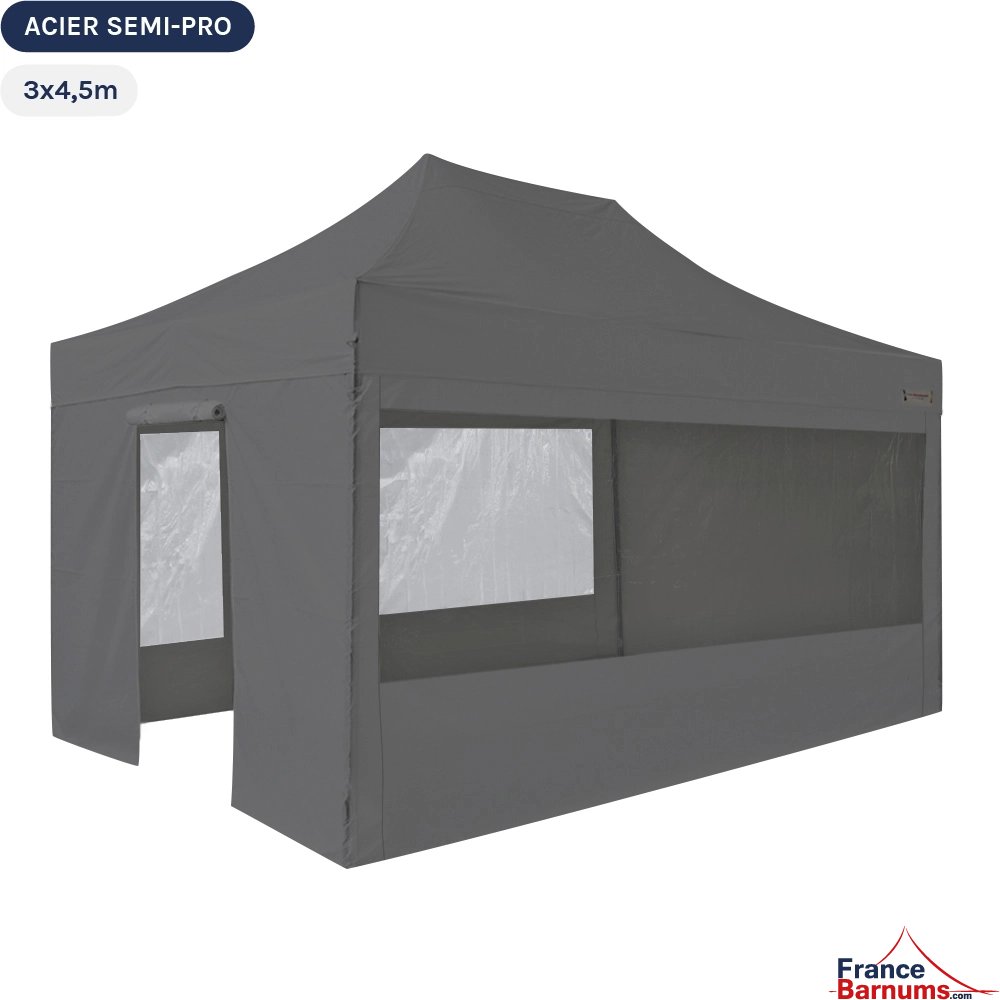 Barnum pliant - Tonnelle Acier Semi Pro 3mx4,5m GRIS avec Pack Fenêtres