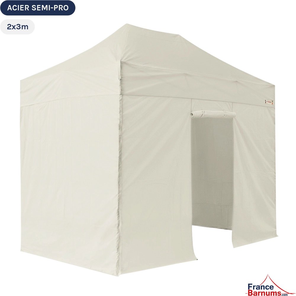 Barnum pliant - Tonnelle Acier Semi Pro 2mx3m BEIGE avec Pack 4 Côtés