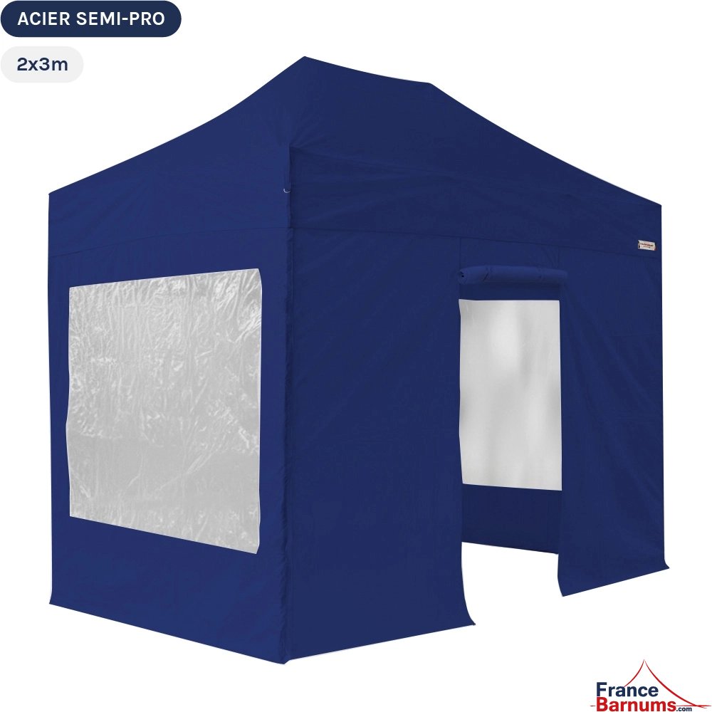 Barnum pliant - Tonnelle Acier Semi Pro 2mx3m BLEU avec Pack Fenêtres