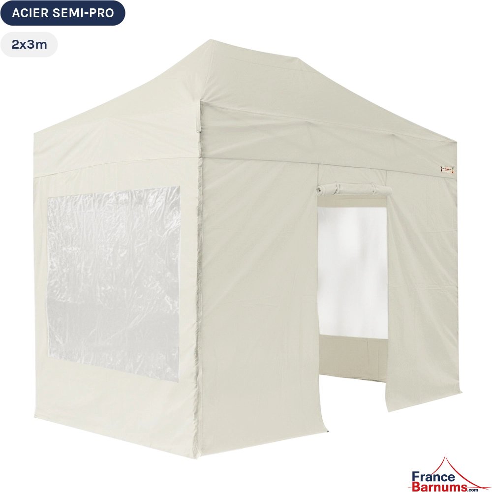 Notre barnum pliant ACIER SEMI-PRO 2x3m est un abri très maniable et polyvalent pour toutes vos activités. Cette tente pliante vous offrira un maximum de possibilités.