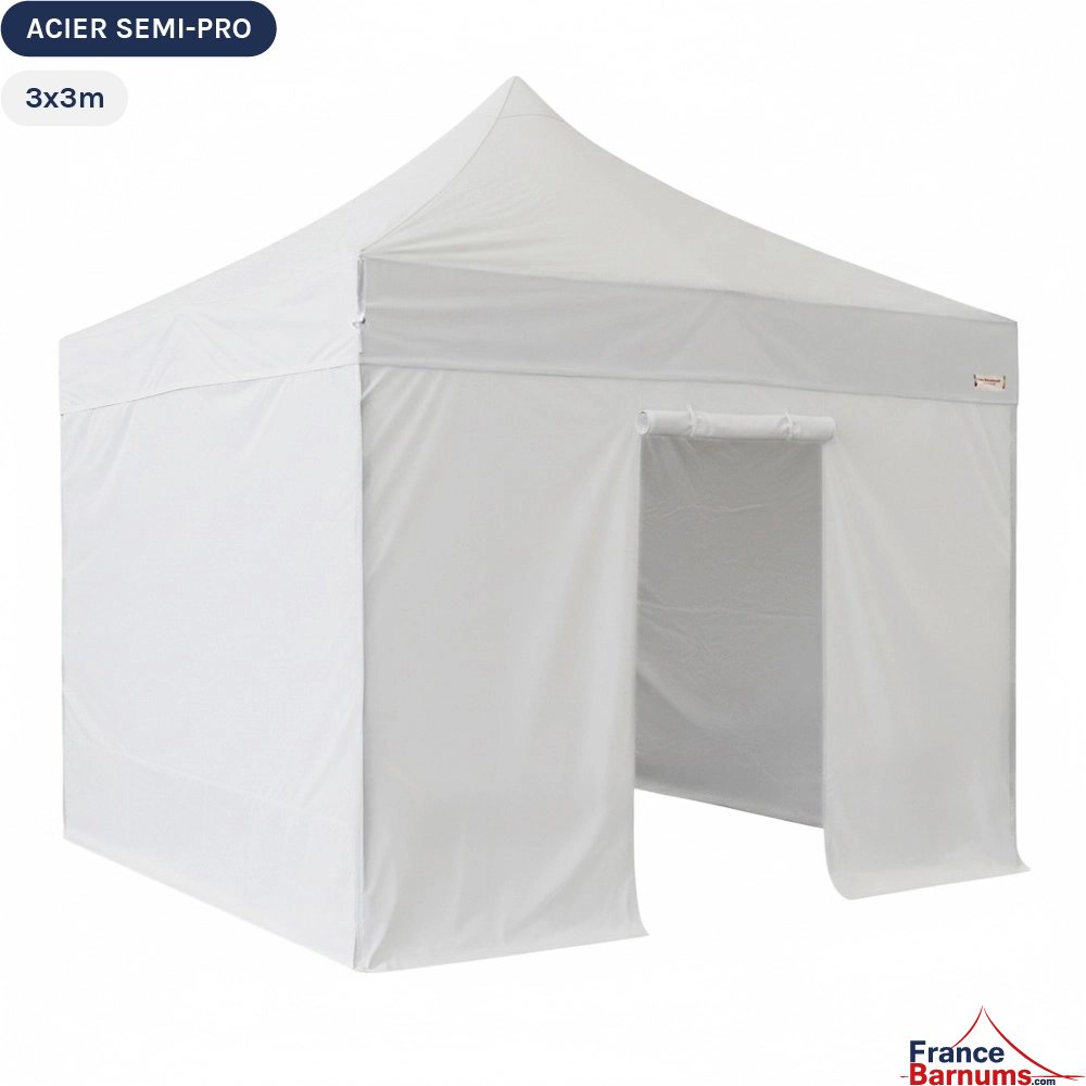 Barnum pliant - Tonnelle Acier Semi Pro 3mx3m BLANC avec Pack 4 Côtés