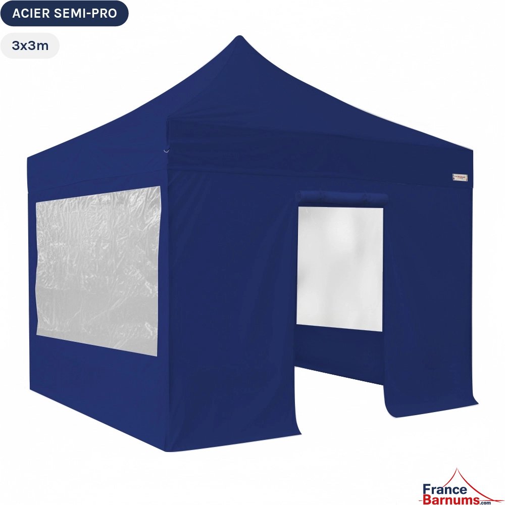 Barnum pliant - Tonnelle Acier Semi Pro 3mx3m BLEU avec Pack Fenêtres
