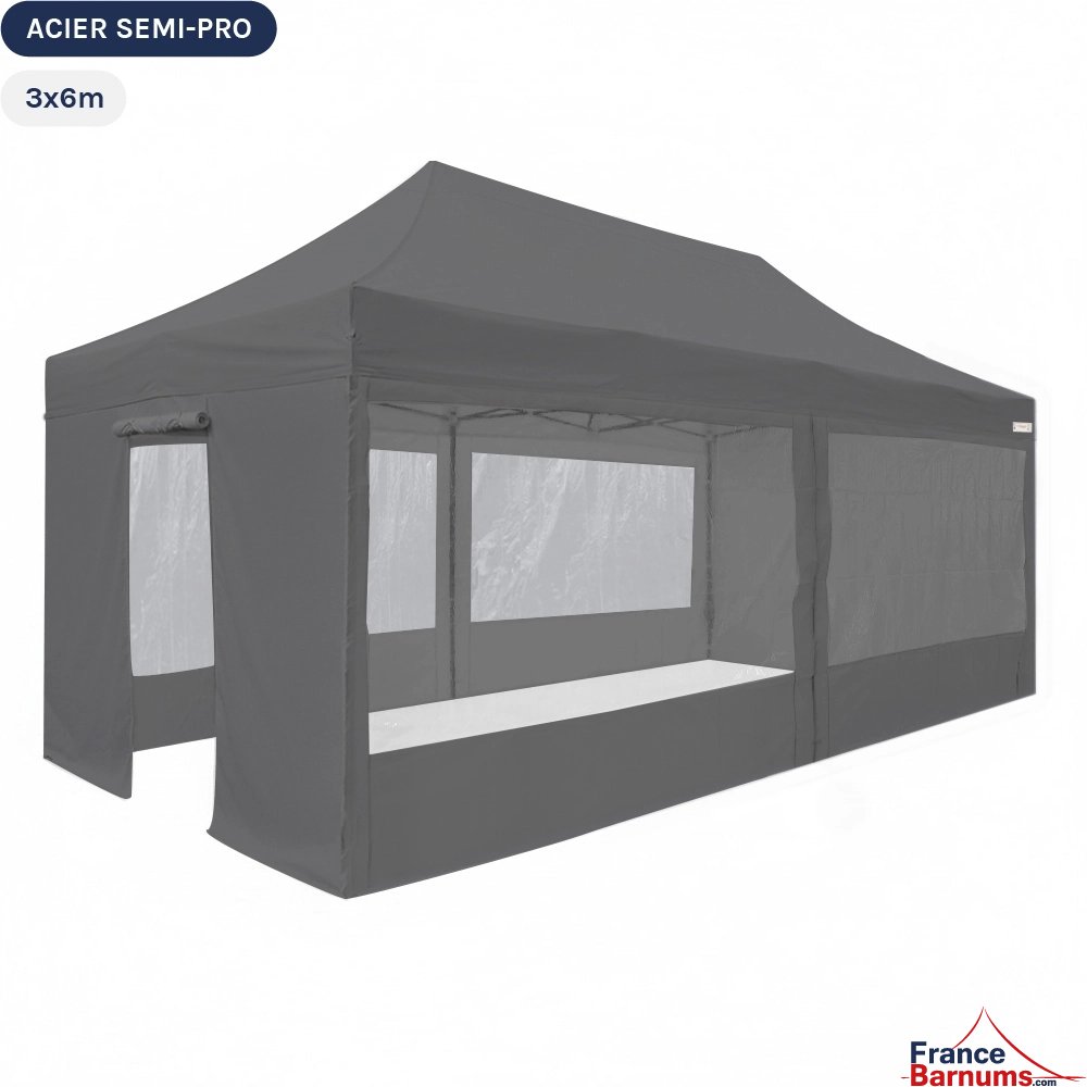 Barnum pliant - Tonnelle Acier Semi Pro 3mx6m GRIS avec Pack Fenêtres