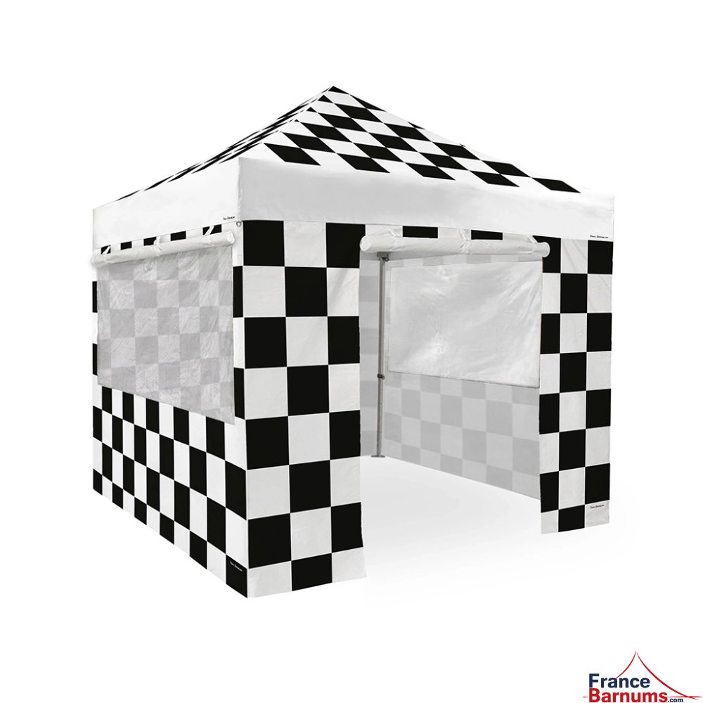 Inspirée des damiers emblématiques qui annoncent la victoire sur les circuits, notre collection capsule RACING transforme chaque événement en opportunité de performance. Pas question de se fondre dans la masse : oubliez les stands pliants ternes et anonymes. La Capsule RACING joue la carte de l'audace chromatique avec quatre coloris francs et assumés.