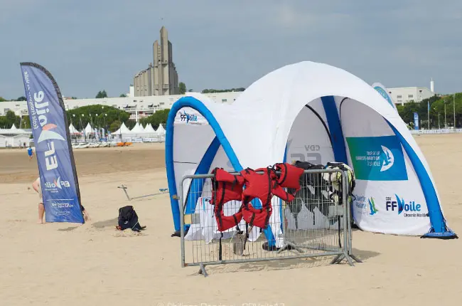 Tente gonflable abritant les gilets de sauvetage d'un club de voile