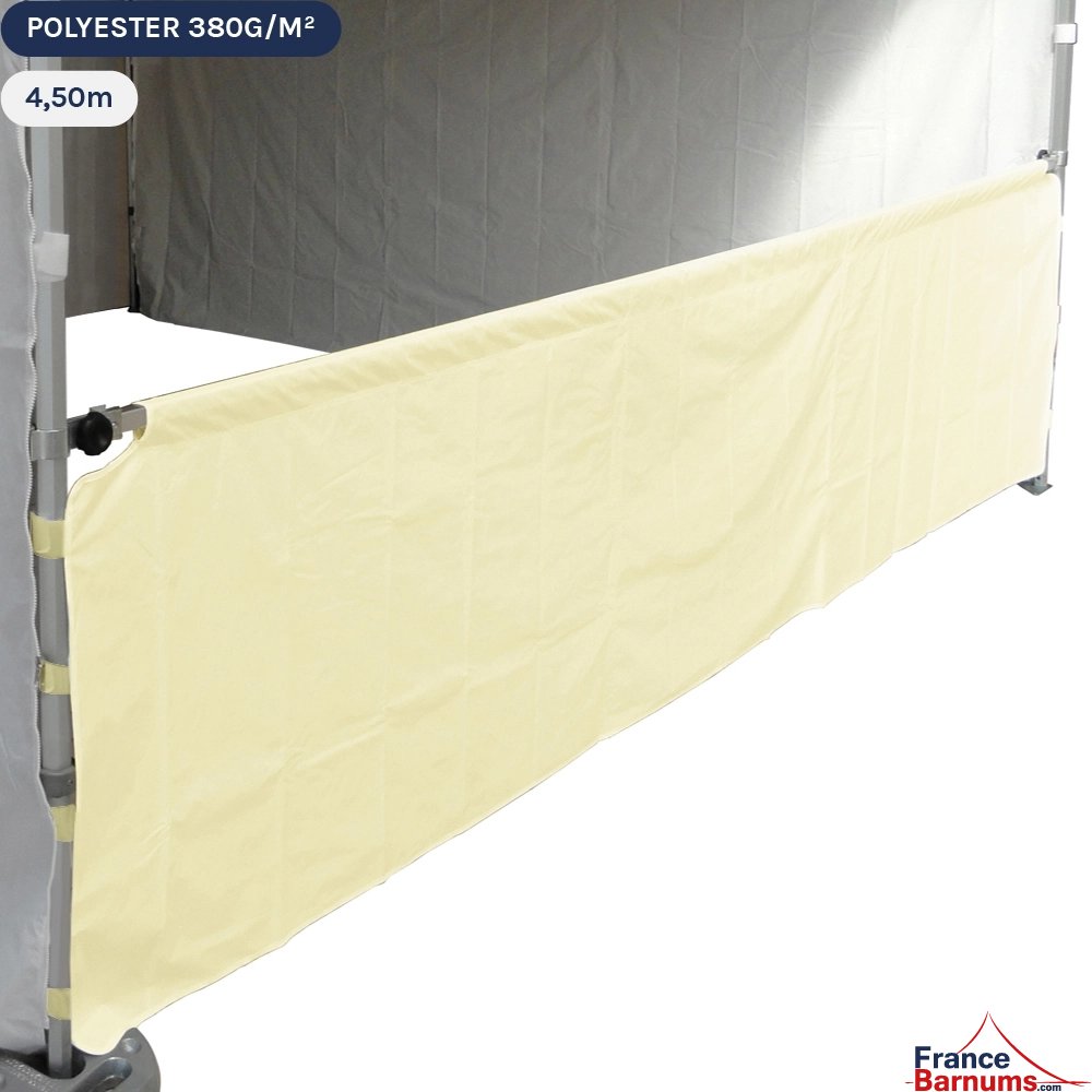 Ce demi-mur en Polyester avec enduction PVC 380 g/m² certifié M2 est léger et facilement maniable. Il vous permet d’ajouter une option de configuration supplémentaire à votre stand pliant selon vos envies et vos besoins. Les demi rideaux sont une solution idéale pour délimiter des zones, gérer les flux de personnes ou encore masquer le bas de vitrines lors de vos événements.
