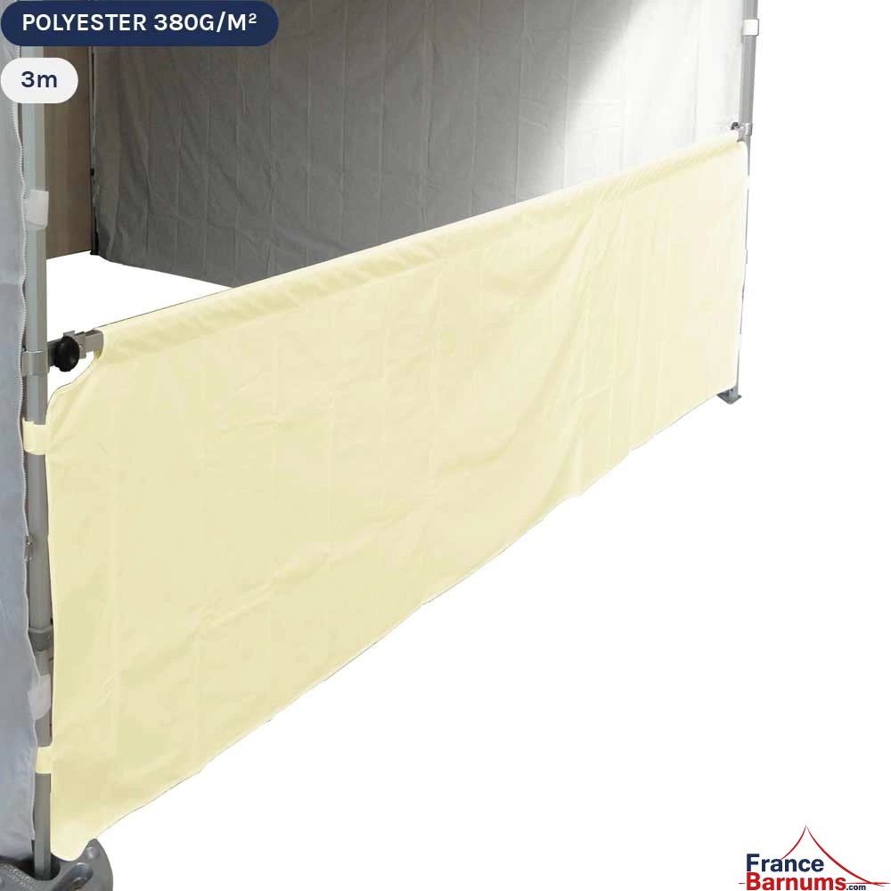 La bâche demi paroi est proposée seule. Pour créer un kit complet, il faut l'associer à une barre de maintien et 2 connecteurs adaptés au diamètre de la structure de votre barnum pliant.
