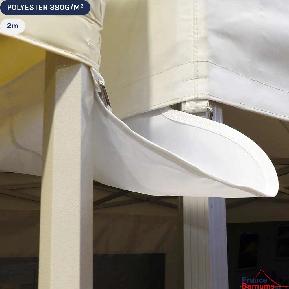 Gouttière en Polyester 380gr/m² de 2m pour tente pliante à fixer par bandes de velcro sur les bandeaux de la bâche de toit