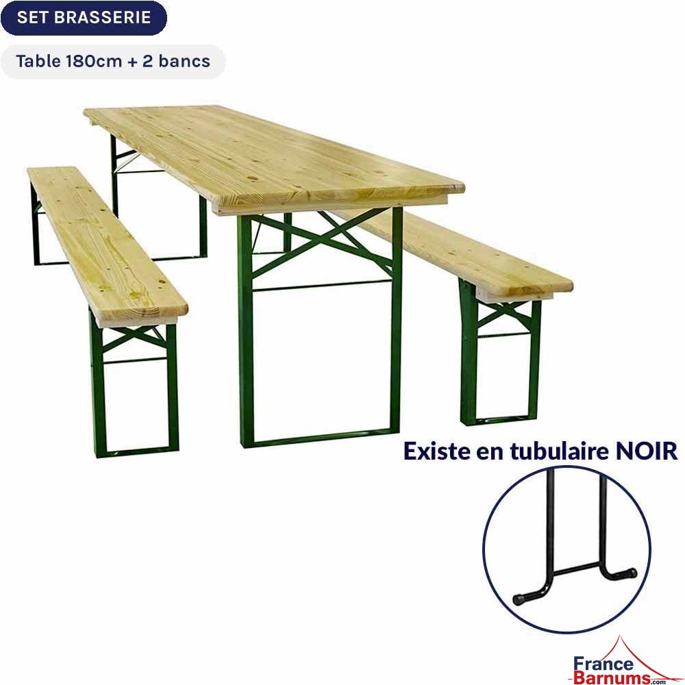Ce lot de table et bancs de brasserie est adapté à l’intérieur comme à l’extérieur. Il a été pensé pour répondre aux besoins des particuliers, professionnels et collectivités. Composé de plateaux en bois, épais de 30mm, et de pieds en Acier, ce set brasserie allie robustesse et élégance.