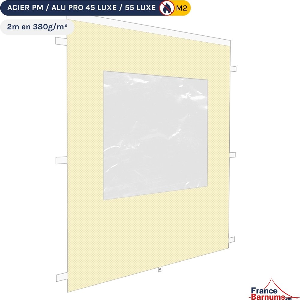 Mur fenêtre 2m beige pour barnum pliant en 380g/m² Norme M2