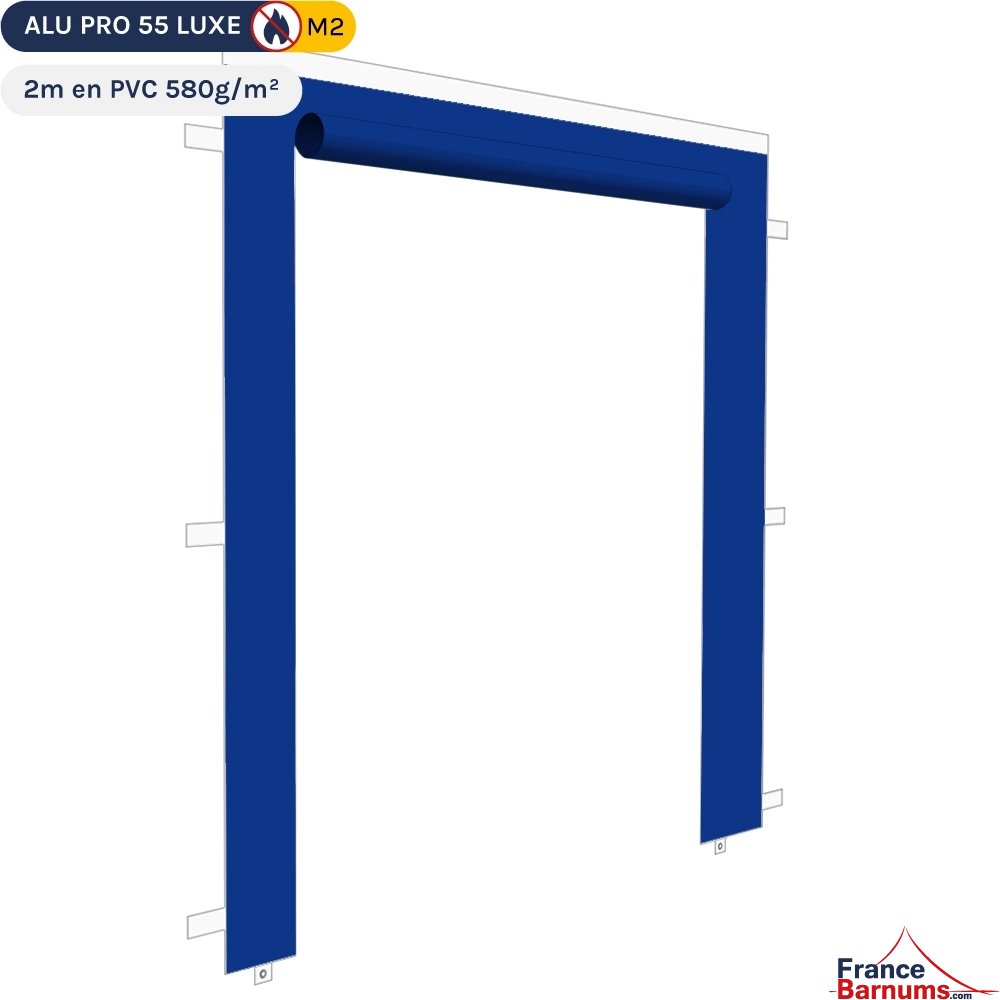 Cette paroi avec porte enroulable pour barnum pliant est en PVC de 580g/m², ignifugée par calandrage et répond à la norme de résistance au feu M2.