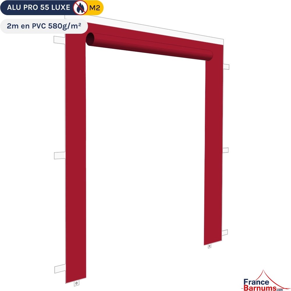 Mur 2m rouge avec porte enroulable pour barnum pliant en PVC 580g/m² Norme M2