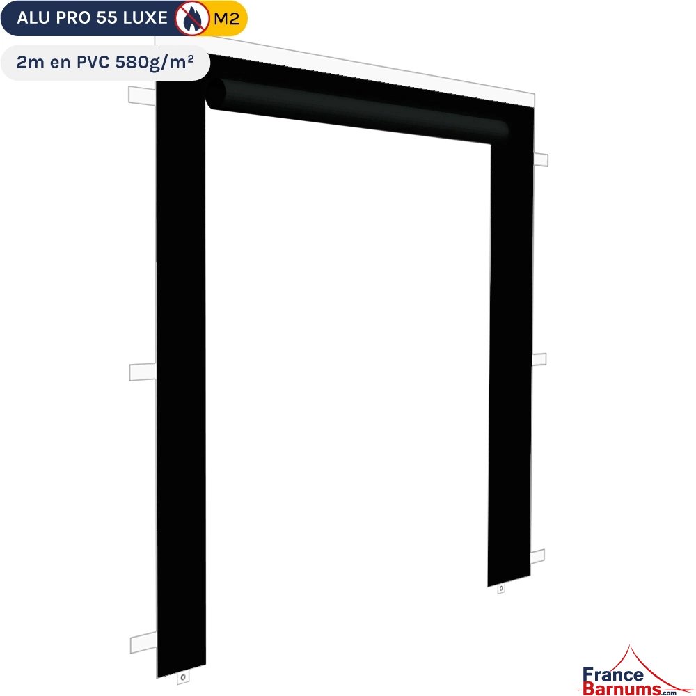 Mur 2m noir avec porte enroulable pour barnum pliant en PVC 580g/m² Norme M2
